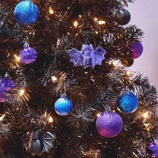 Start early, set up in October and go all out for Halloween, transition to fall and then Christmas anchoring your holiday decorations with this 7ft. Pre-Lit LED Artificial Black Fir Tree with 38in. diameter. Just as festive as a live tree, this piece is made with metal-hinged branches that are covered with 780 black tips to recreate the look of a natural tree. Lit with 350 warm white LED lights are pre-strung, so you can brighten up your space as soon as you plug this holiday tree in. This tree comes apart into several tiers for easy storage. Includes metal tree stand for quick and easy setup.