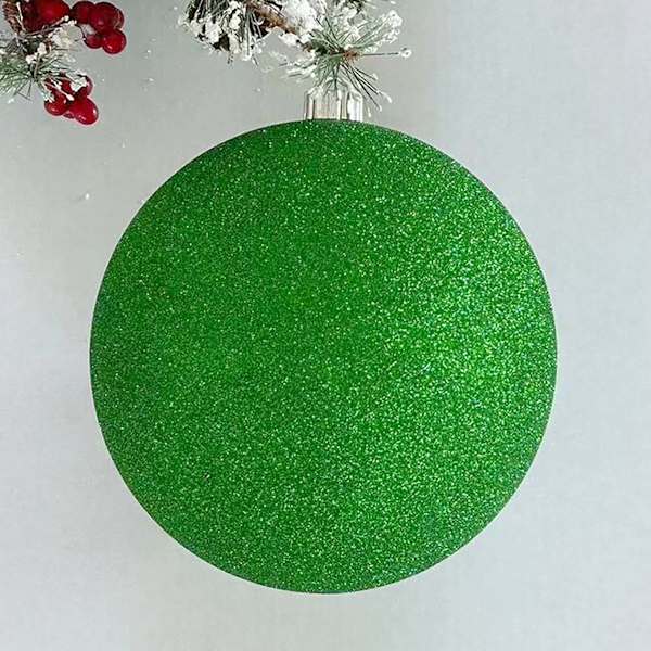 Bring a pop of festive color to your Christmas decor with this 8in. green glitter ornament. Crafted from shatterproof plastic, it adds a touch of sparkle without the worry of breakage.