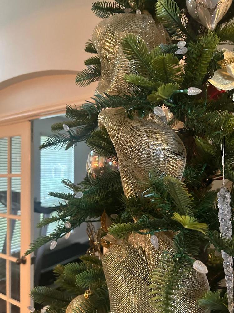 Add sparkling, brilliant accents to your gifts, tree and decor pieces with festive holiday ribbon. Our 10yd. roll is 10.5" wide. Crisp to the touch, lightweight, easy to work with and a season-inspired Christmas champagne mesh ribbon design to make the season even more merry and bright. This ribbon is great for festive holiday parties, gift giving, and crafts.