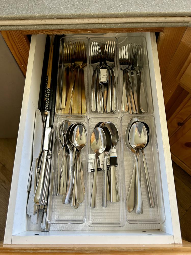 Transform chaos into clarity with the 13-piece clear kitchen drawer storage set. Made of plastic, it seamlessly fits into kitchen nooks, bringing order to every drawer. Perfectly clear, it lets you spot exactly what you need without rifling through old clutter.