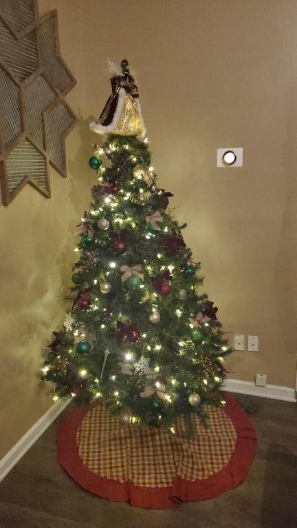 It is a perfect mat hto the tree skirt and other ornaments. The different shades really made the tree pop.
