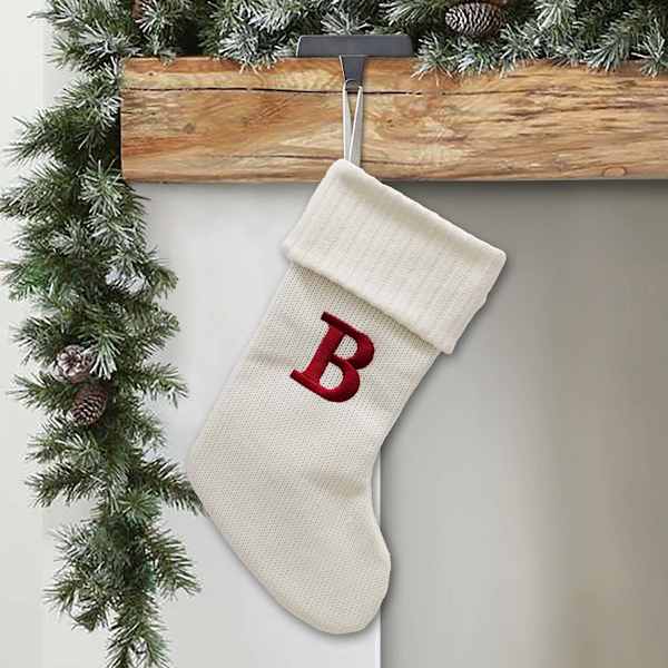Bring a clean, cozy look to your mantel with this 19in. White Knit Monogram "B" Stocking. Crafted from soft fabric with a classic cable pattern and a folded cuff, it features a monogram for a personal touch. Perfectly sized, it offers plenty of room for little surprises. A sewn hanging loop makes display simple and secure. The neutral white hue blends easily with modern or traditional decor.