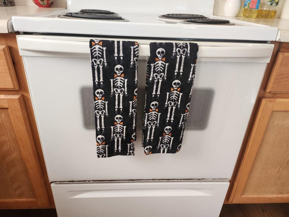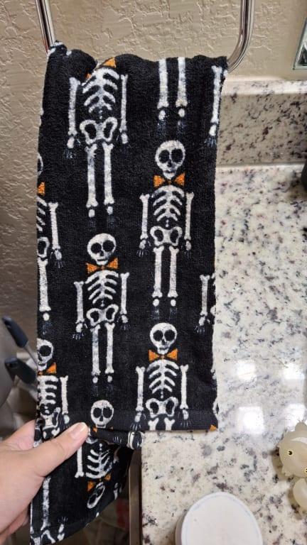 CheckoutOur 2-Pack Bowtie Skeleton Printed Hand Towels are the perfect addition to your eerie decor. Made of soft cotton, these hand towels offer a touch of seasonal spirit to your home.