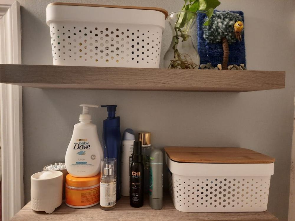 - 2-pack plastic bin with bamboo lid for convenient storage.