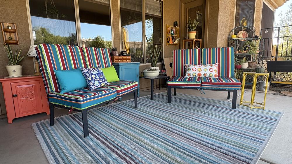 It's polyester construction and all-weather capability make this 2-Piece Alvarado Stripe Outdoor Deep Seat Cushion a must-have for outdoor entertaining. Create a stunning patio, porch or deck that will be the talk of the neighborhood. Check our overall selection for a variety of shapes, sizes, patterns and colors to fit the personality of your patio.