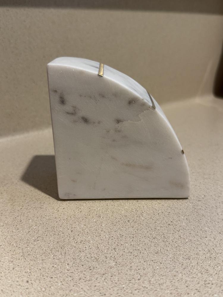 Elevate your bookshelf game with the stunning White and Gold Marbled Semicircle Bookends. Crafted from stoneware, these bookends effortlessly combine form and function to bring an aesthetic touch to any book collection.