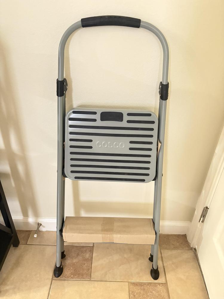 Time to step it up? Grab this metal step stool to safely reach those high kitchen cabinets. When you're done, it's a breeze to store this 2-step folding ladder! Just fold and slide into any small space.