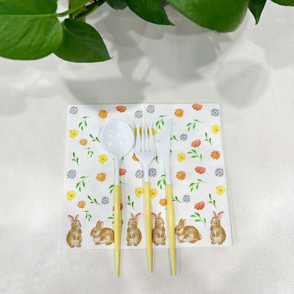 Whether you're hosting a spring luncheon or simply want to brighten up your meal, these napkins are the perfect sidekick. Their playful design with floral bunnies is sure to bring a smile to your face and your guests. Easy to use and dispose of, they're designed to make clean-up a breeze, so you can focus on the fun.