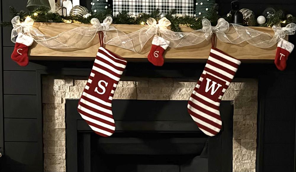Make the mantel merry with the Red and White Striped "S" Monogram Knit Stocking. Bold stripes and a classic knit give it a timeless look, while the lettering adds a personal touch. This festive stocking offers plenty of room for small gifts and little surprises. The soft fabric drapes nicely and the knit texture brings cozy charm to your holiday scene. Hang one for every A in the house and let the season feel a bit more you.