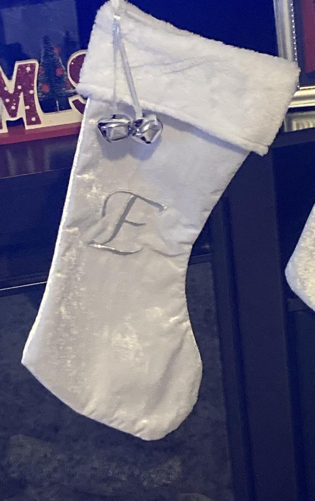 Soft white velvet gives our 20in. White Velvet Monogram "E" Stocking a calm, timeless look for your mantel. The monogram adds a personal touch that stands out without shouting. The clean silhouette pairs easily with classic or modern decor. Finished in velvety fabric with a soft, matte sheen. Perfectly sized, it offers generous room for thoughtful gifts. A simple staple to bring out year after year.