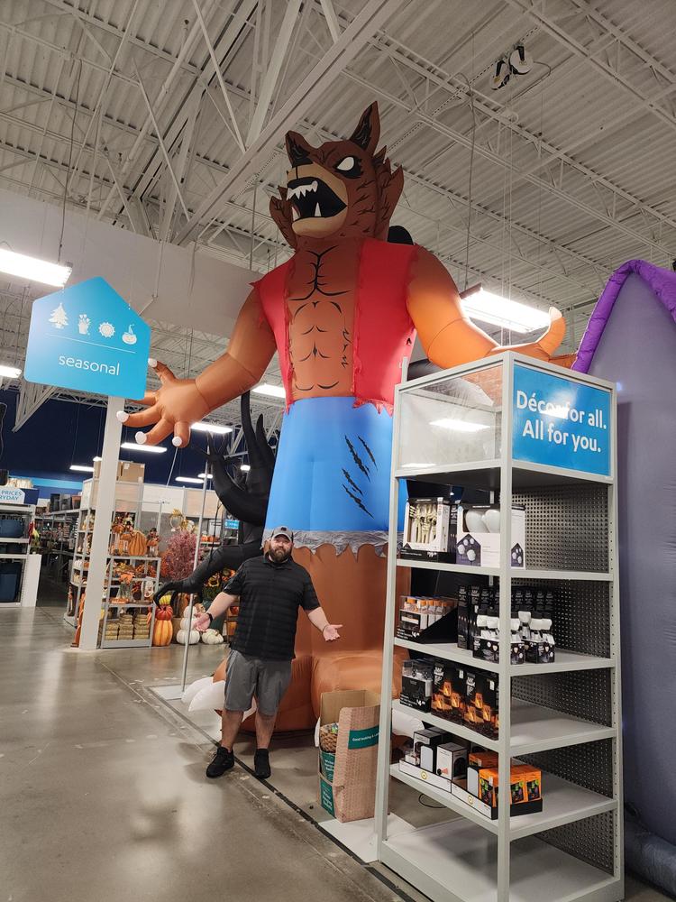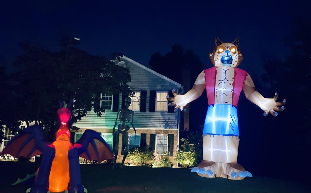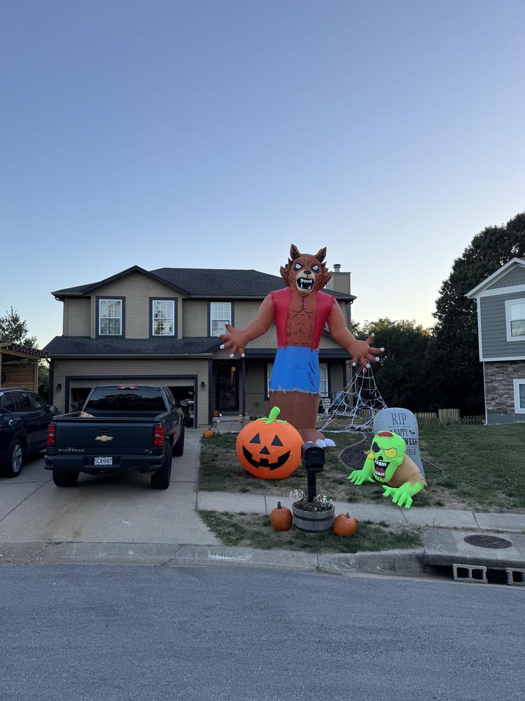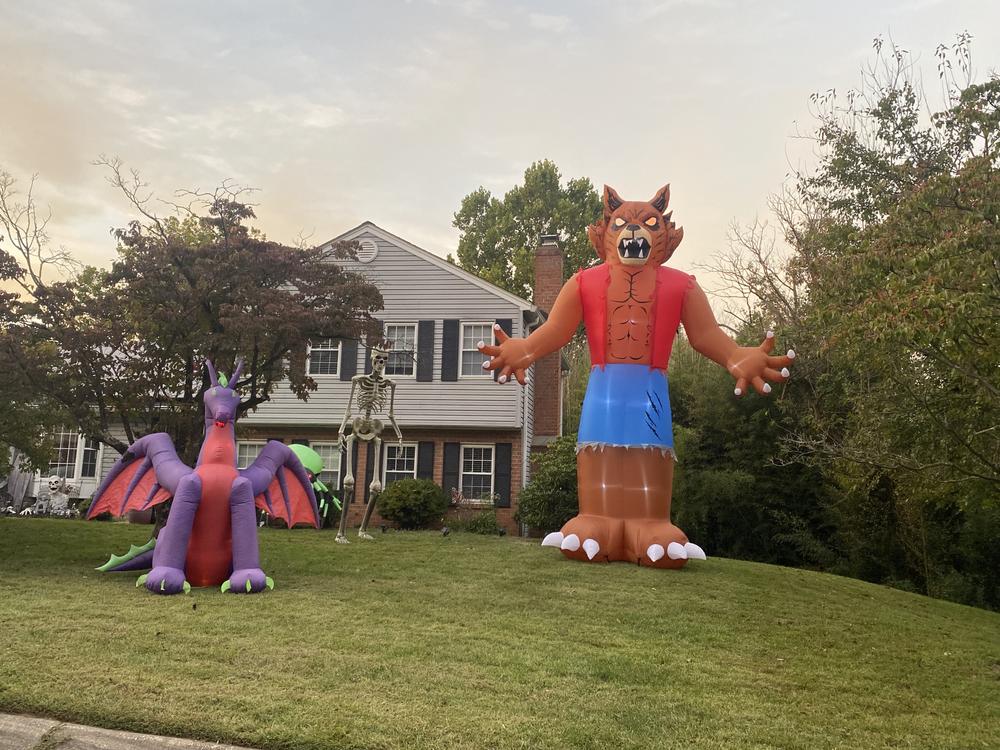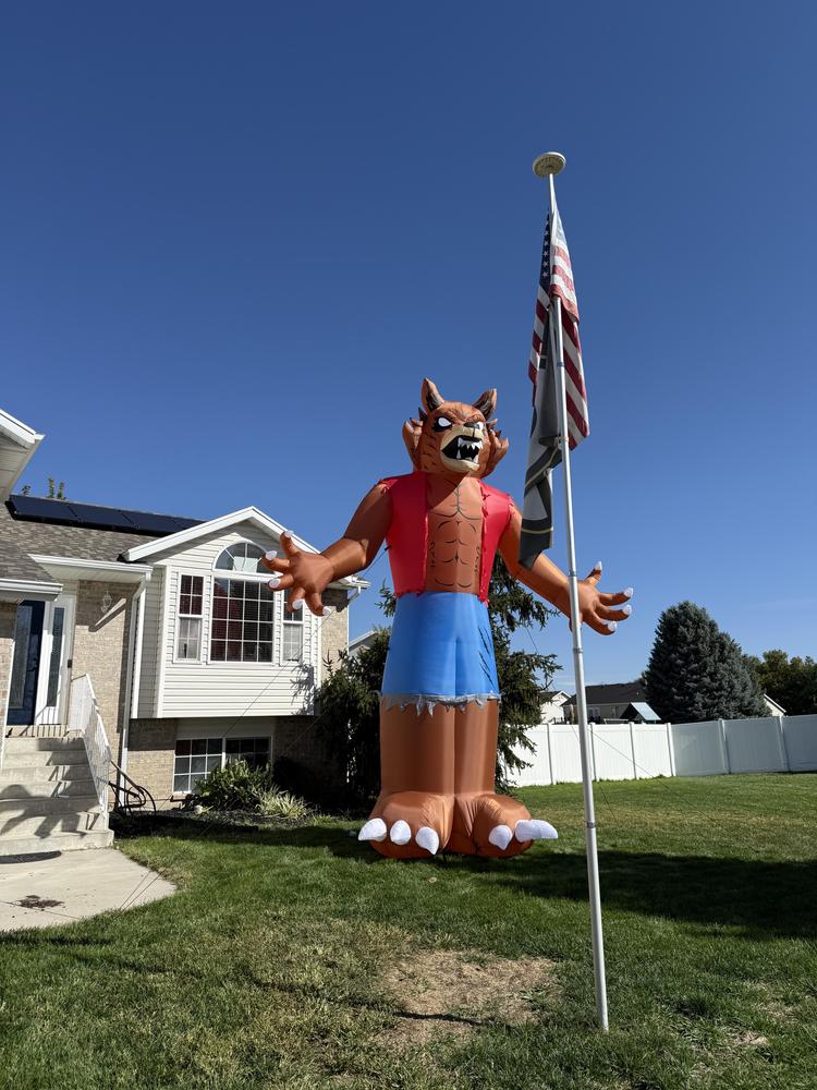 Blow up your holiday curb appeal with this oversized 20ft. Werewolf Halloween Inflatable Decoration. This creepy character is sure to draw attention. Whether you place this Halloween inflatable in the front yard or backyard, it serves as a bold and eye-catching seasonal centerpiece. Passers-by will be drawn to its unique and colorful presence, making your home stand out in the neighborhood during the festive season. The polyester werewolf comes with a blower to quickly inflate this amazing decoration. When the festivities are over, deflating and storing this blow up is equally simple. You can fold it up and tuck it away for continual use for years to come. The inflatable lighted werewolf with glowing eyes is full of spooky personality and provides an interactive element for trick-or-treaters and party goers all season long.