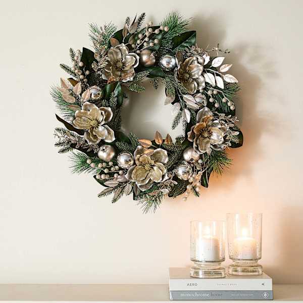 24In Gold Magnolia Wreath