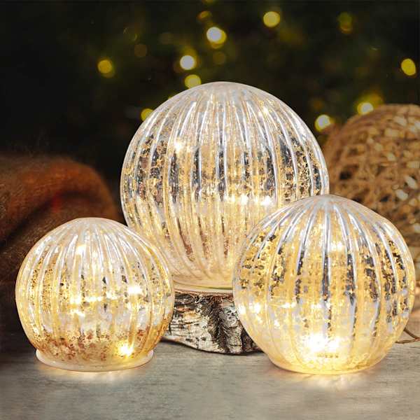 Bring a soft, festive glow to your home with this 3-pack LED metallic glass sphere set. Each glass orb shines with a warm, candle-like light, creating cozy ambiance without flame or smoke. The metallic finish adds modern shine that plays beautifully on mantels, shelves, and entry tables. Cluster them as a centerpiece or style them separately for layered holiday decor. These flameless LED candles make a simple, elegant update to Christmas LED candle displays. A sleek seasonal accent that works from the first snowfall through the new year.