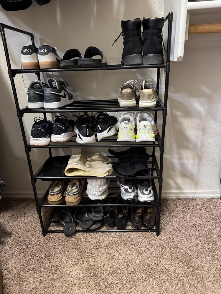 Organize your shoe collection in style with this sleek 6-tier metal shoe rack. Its contemporary black finish adds a modern touch, effortlessly blending with any decor.
