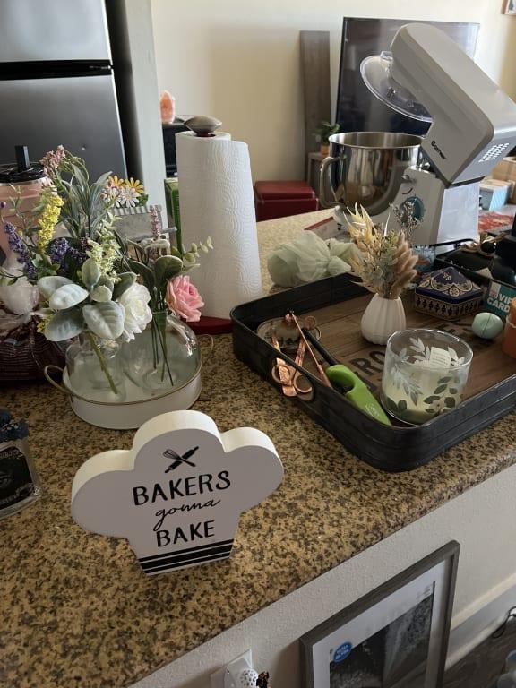 Create a cozy and charming atmosphere in your kitchen with the Tabletop Bakers. Crafted from wood, this kitchen sign blends seamlessly with any decor style, effortlessly adding a touch of rustic allure. Its neutral white hue complements the vibrant colors of your delectable dishes, giving your kitchen a warm and inviting ambiance.
