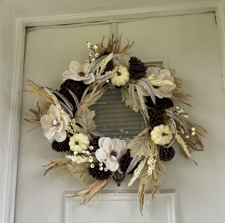 This stunning floral spray will bring a touch of natural beauty to any space. The white magnolia blooms, made from polyester, exude a classic charm that is always in style. With its lush greenery and delicate petals, this spray is perfect for adding a touch of elegance to your home or special event.