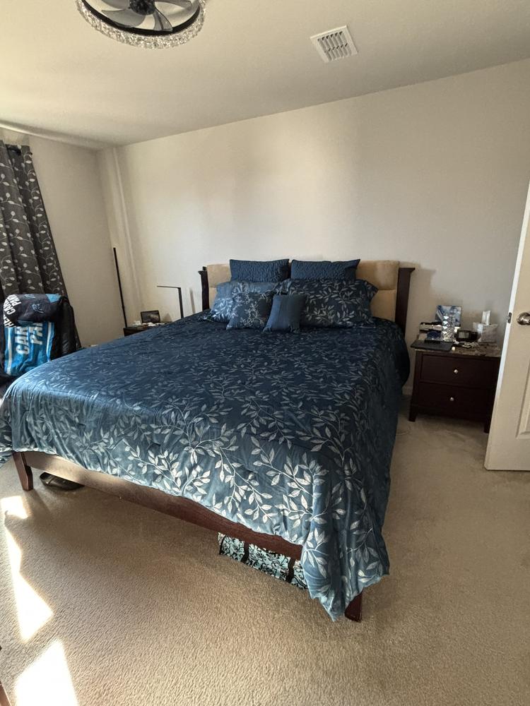 CheckoutAdd a touch of tranquility to your bedroom with the Villard Blue King Comforter Set. This 7-piece set offers everything you need to create a cozy and inviting space to relax and recharge. Crafted in a blend of polyester and cotton, it combines the softness and durability for a perfect night's sleep.