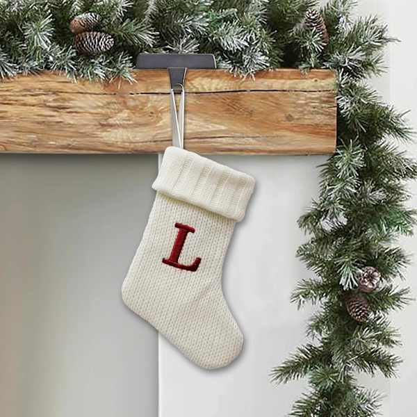 Bring a clean, cozy look to your mantel with this 8in. White Knit Monogram "L" Stocking. Crafted from soft fabric with a classic cable pattern and a folded cuff, it features a monogram for a personal touch. Perfectly sized, it offers plenty of room for little surprises. A sewn hanging loop makes display simple and secure. The neutral white hue blends easily with modern or traditional decor.