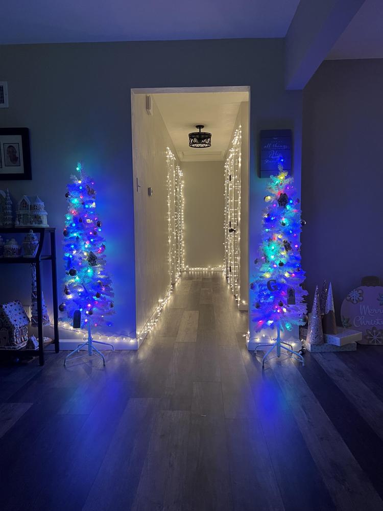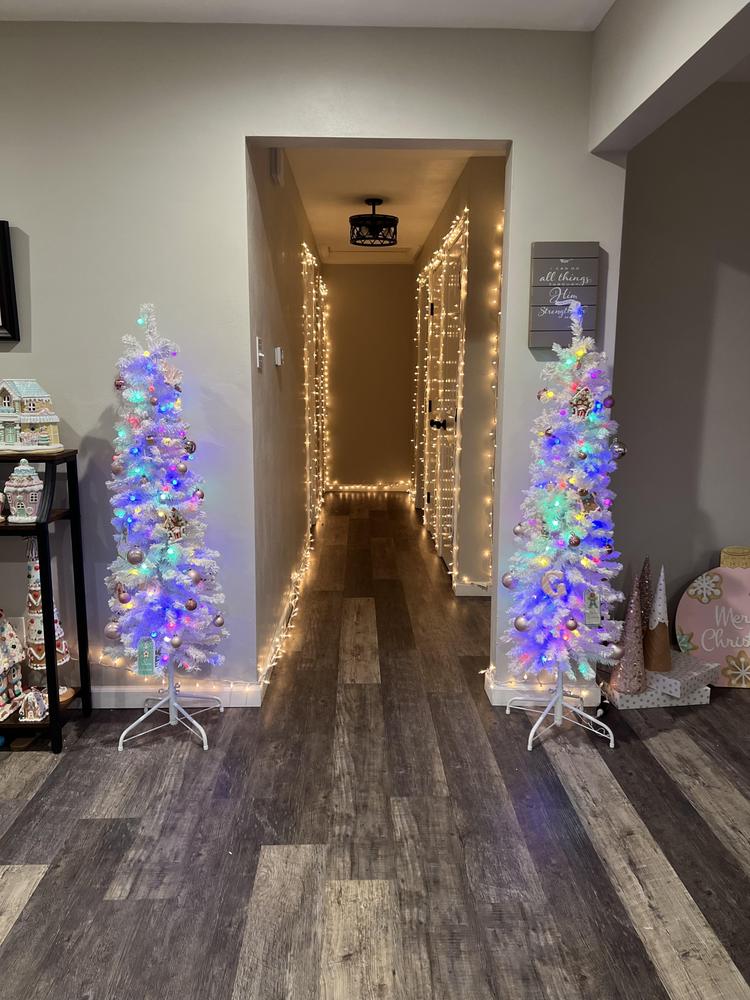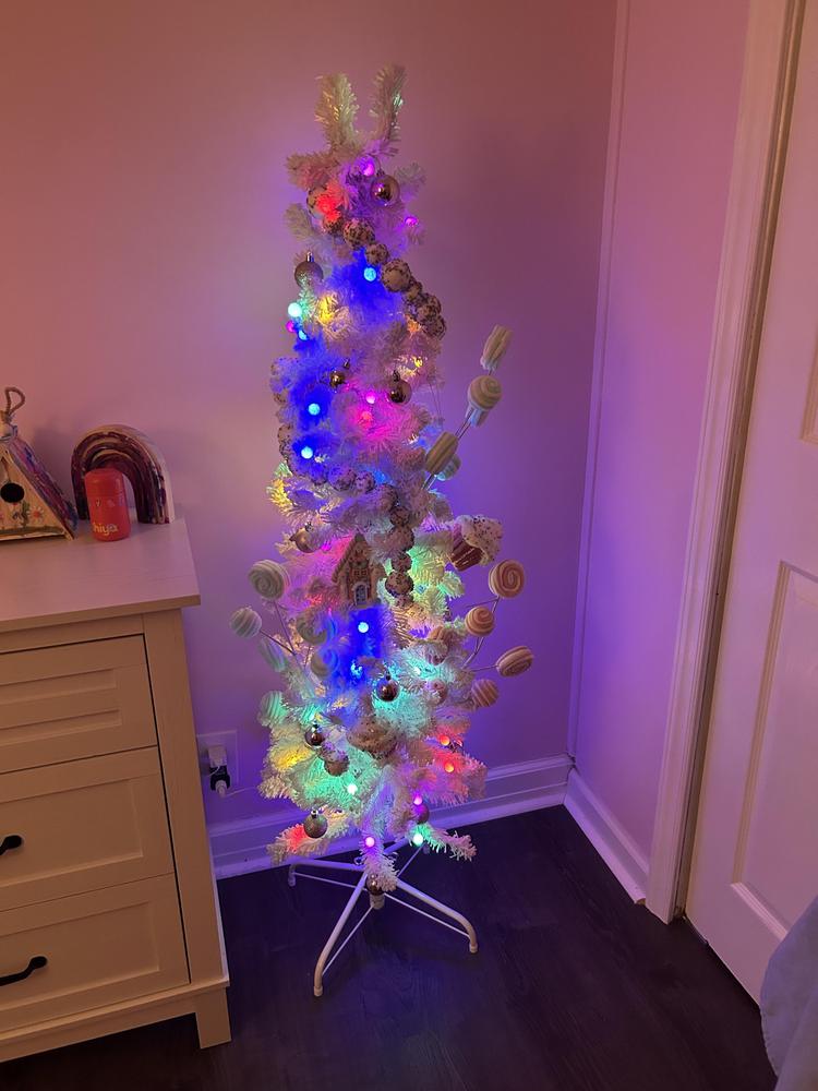 Dreaming of a white Christmas? Make it a reality with our stunning 5ft. Pre-Lit LED Slim Flocked White Fir Christmas Tree with 13in. diameter. This pre-lit, flocked fir tree with 250 tips will transform your space into a winter wonderland, evoking the cozy, festive feeling of the holidays. With its slim profile, it's perfect for smaller spaces while still making a big impact. Enjoy the convenience of plug-and-play setup - just unfold, fluff, and plug in to instantly elevate your Christmas décor. Whether you're decorating your first apartment or looking to upgrade your holiday display, this pre-lit tree is a hassle-free way to capture the magic of the season. Featuring 80 multicolor LED lights. Create cherished memories with family and friends as you gather around this stunning focal point. Metal stand included.