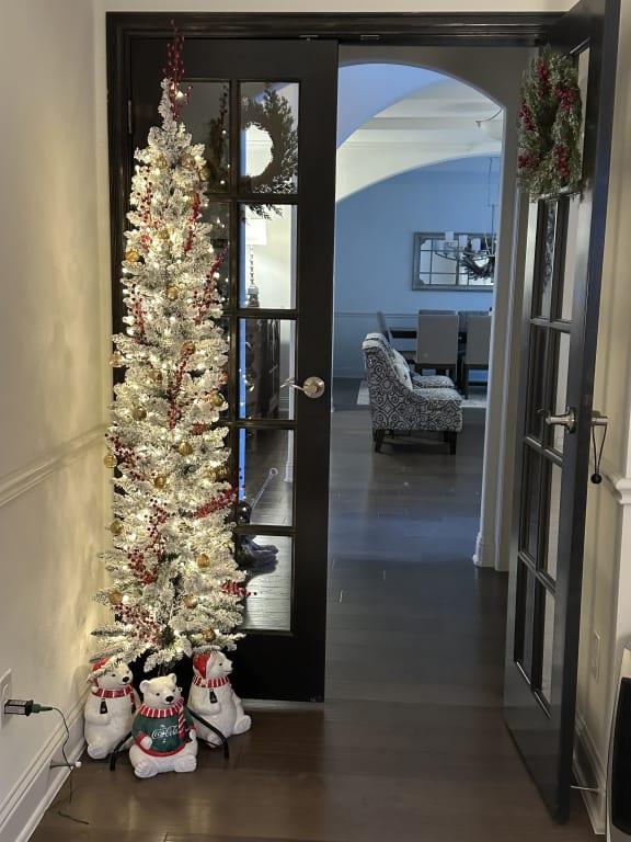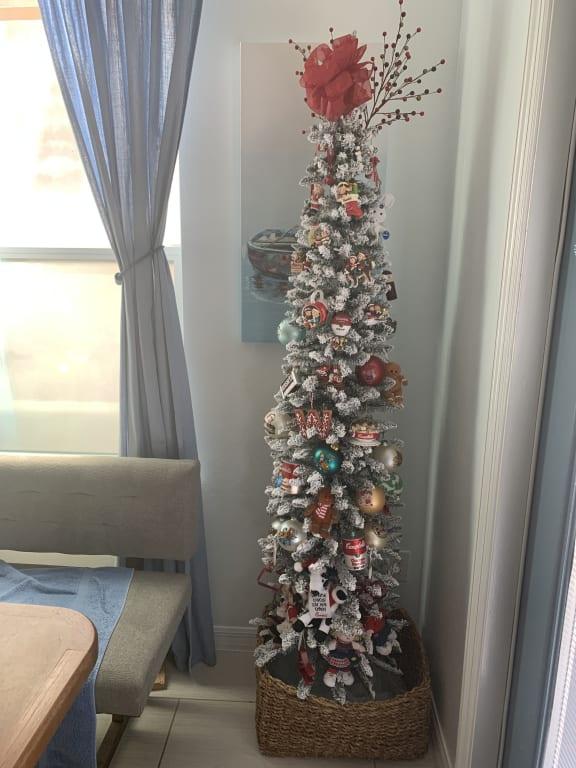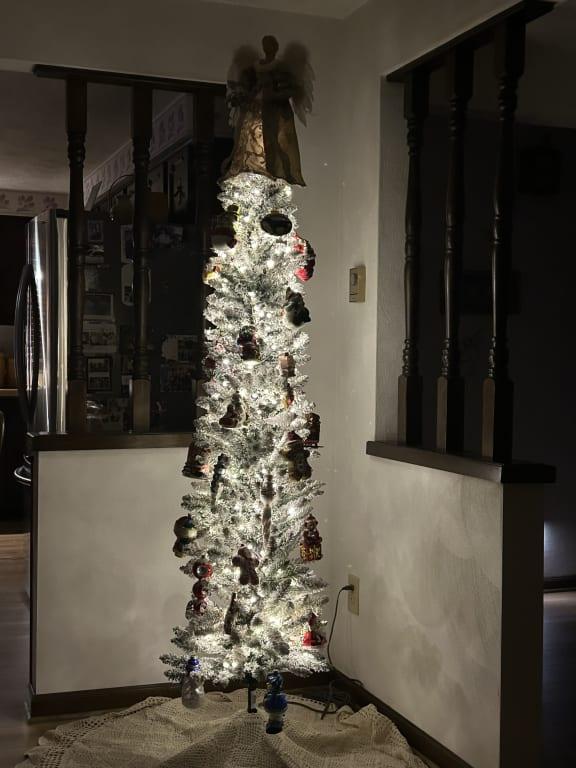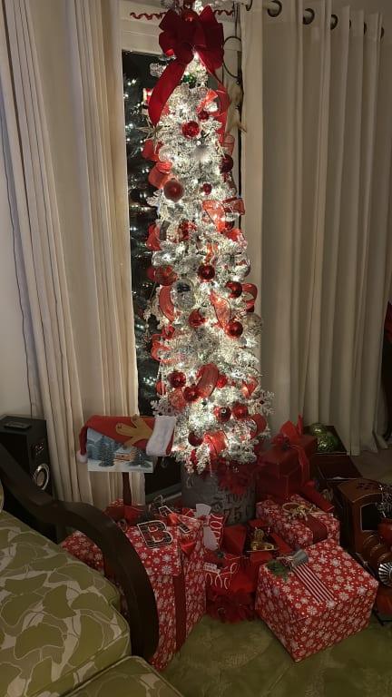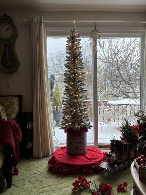 The perfect little lighted tree and its flocked!