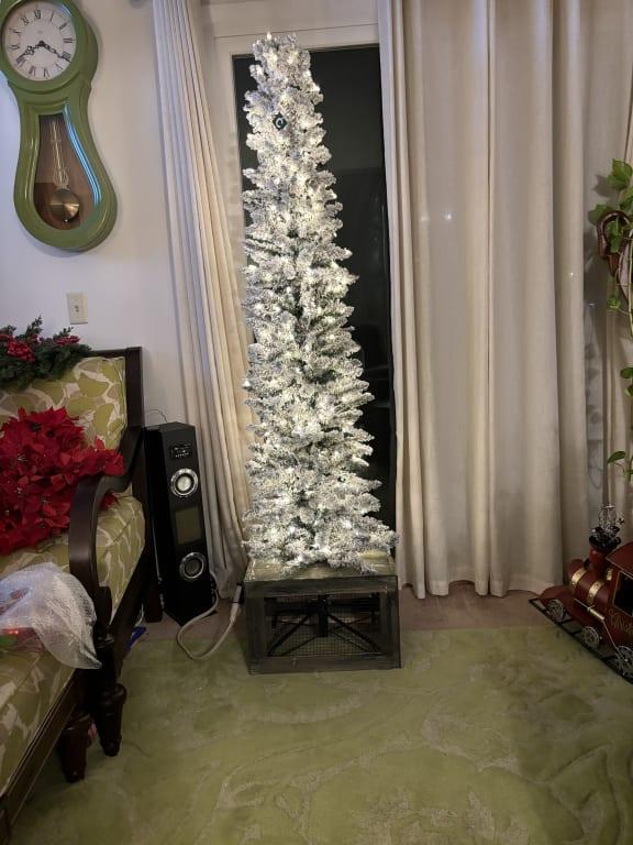 Pre-Lit Flocked Pencil Tree