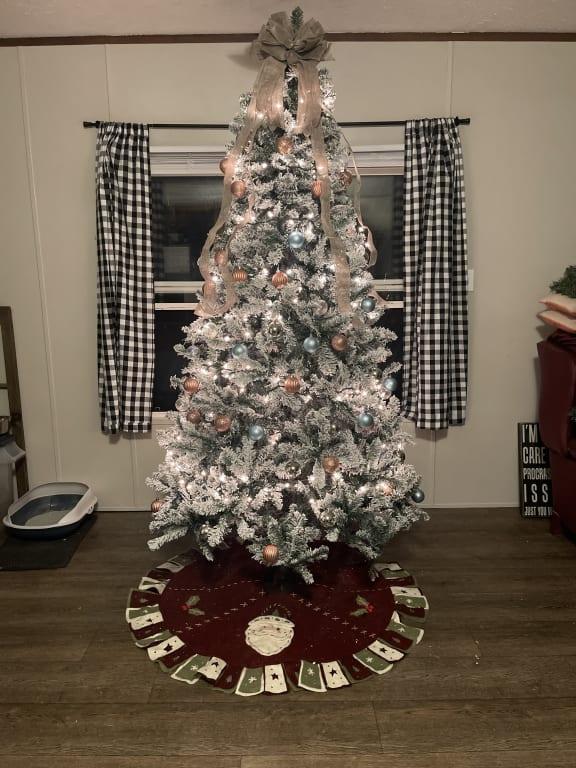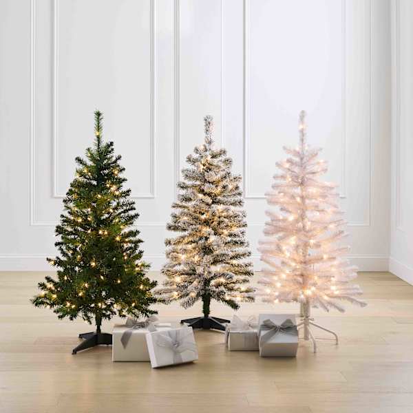 Skip the trip to a tree lot this year and anchor your holiday decorations with this 4ft. Pre-Lit Flocked Slim Summit Fir Christmas Tree with 24in. diameter. Just as festive as a live tree, this artificial tree features 110 tips to recreate the look of a natural tree-all without the upkeep. The Summit tree is pre-lit with 70 clear white incandescent lights woven throughout the branches. This Christmas tree features a slender shape that makes storage easy. It also arrives with a plastic stand, so all you need to do is add a tree skirt, your favorite ornaments then sit back and enjoy the season.