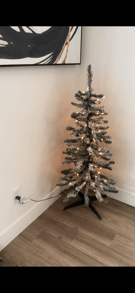 Skip the trip to a tree lot this year and anchor your holiday decorations with this 4ft. Pre-Lit Flocked Slim Summit Fir Christmas Tree with 24in. diameter. Just as festive as a live tree, this artificial tree features 110 tips to recreate the look of a natural tree-all without the upkeep. The Summit tree is pre-lit with 70 clear white incandescent lights woven throughout the branches. This Christmas tree features a slender shape that makes storage easy. It also arrives with a plastic stand, so all you need to do is add a tree skirt, your favorite ornaments then sit back and enjoy the season.