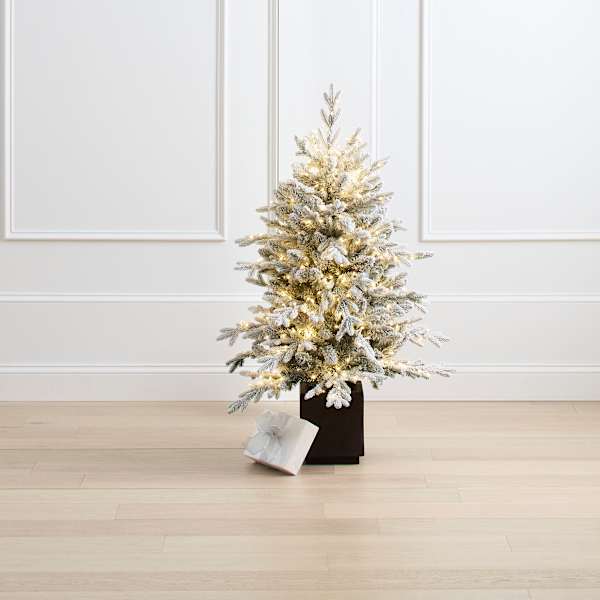 Capture Christmas magic with the lifelike spruce details in our premier Bradley Christmas Tree Collection. This 4ft. Pre-Lit Flocked Bradley Spruce Porch Christmas Tree with 29in. diameter brings a full, natural silhouette with dense snow-dusted branches and a soft, even glow. 500 built-in warm white LED lights are neatly spaced, so setup is simple, and the sparkle feels effortless. Includes a dazzling array of lights with 6 different functions. Featuring 725 tip count while a classic white and green tone and small silhouette make a striking statement in any room the tree is placed. Plastic pot stand included.