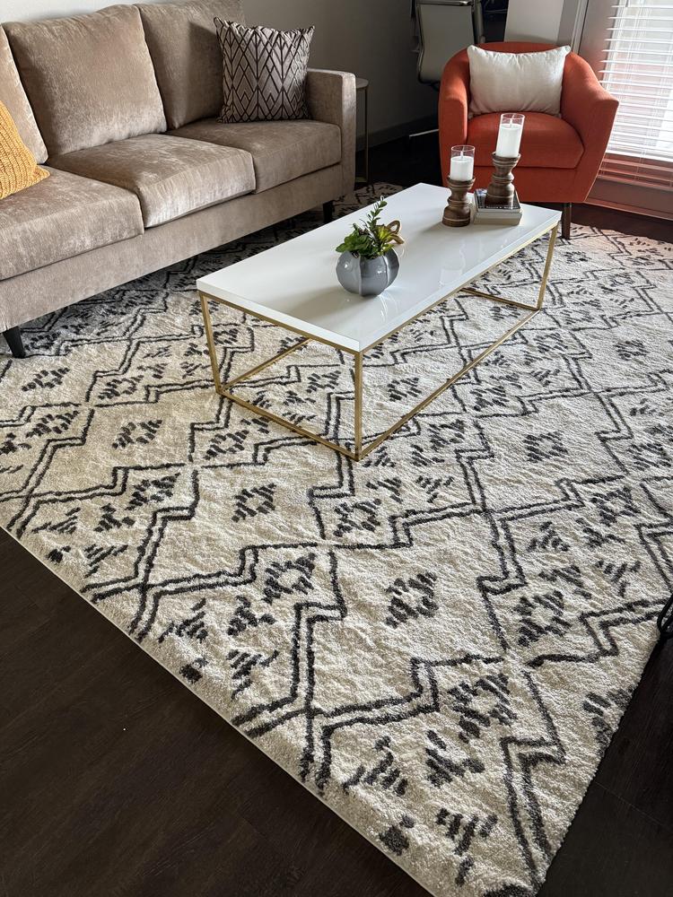 Adorn your floors with the standout modern style of our ivory and dark grey Raymond global area rug. Featuring an allover Moroccan medallion pattern, this rug will enhance the look of any contemporary room. Made of soft polyester, you'll enjoy the plush feel of this rug underfoot, with no pilling and shedding. Raymond is ideal for any living area that needs a little design boost. Available in 3x5ft., 5x8ft. and 8x10ft. sizes.