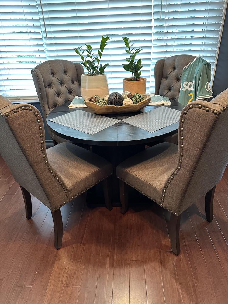 Welcome home to Providence, exclusively At Home. Blend classic looks with affordable prices for a home you'll love almost as much as the people in it. Dining chair? Desk chair? Side chair? You get to choose. Our Aahmad Charcoal Grey Dining Chair has a personality all its own. More than just a seat to settle into for a meal, Aahmad will also round out the aesthetic in your living room, den or office as well. This chair is a great option for pulling up to the dining table with its flattering curves.