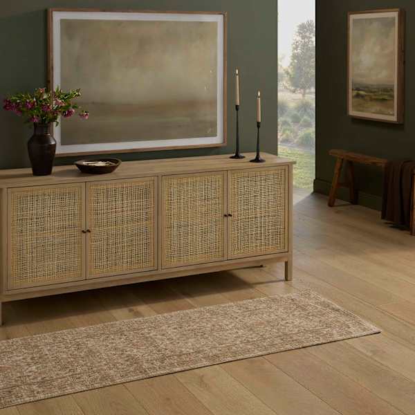 Modern design meets heritage craft in the Alexandria woven runner rug. This durable and versatile brown runner rug was power loomed in Egypt and designed to stand up beautifully to daily life.