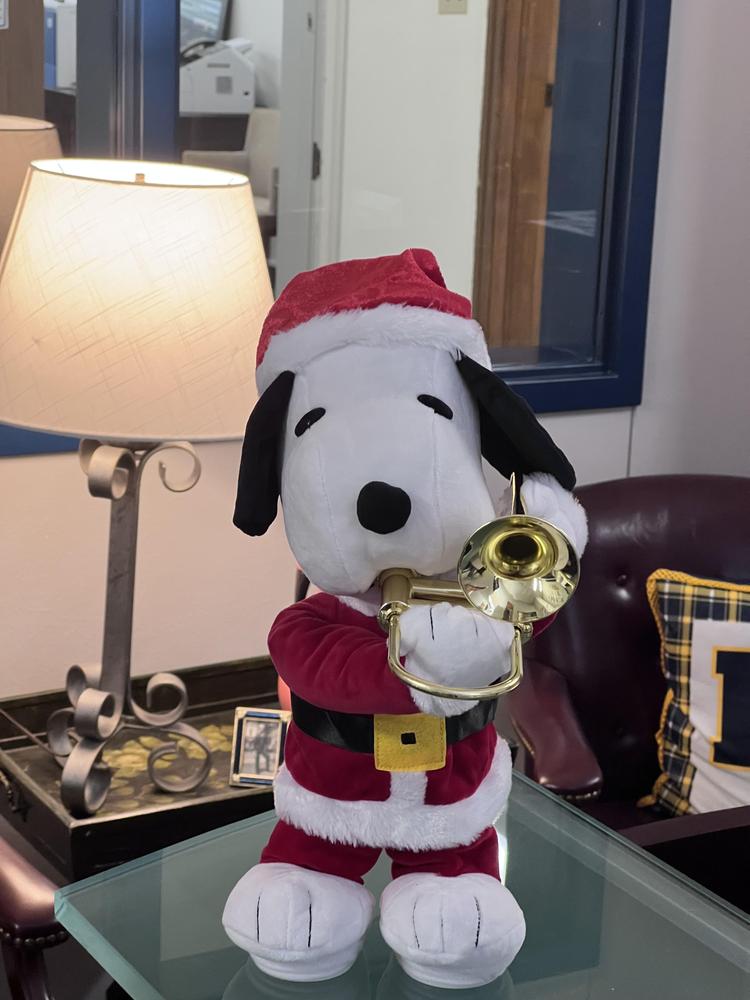 This enchanting plush features everyone's favorite beagle, Snoopy, dressed to the nines in a festive Santa suit. With a trombone in tow, Snoopy isn't just any plush companion; he's here to bring music and merriment to every corner of your home. Simply squeeze him, and watch as he adorably wobbles and entertains the crowd.