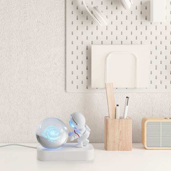 The astronaut inspired design is crafted with an astronaut stand, our Astronaut with Crystal Orb Light pays homage to space exploration and adds a touch of celestial elegance to any space, making it the perfect addition to any space lover's collection. Indulge in the serene illumination of our 3D Astronaut Crystal Ball Night Light, featuring advanced LED technology that radiates a soft and gentle white light. This light is designed to be gentle on the eyes, creating a peaceful and calming environment ideal for restful sleep or quiet moments of relaxation.