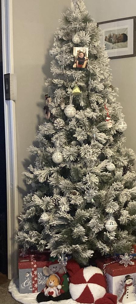 Skip the trip to a tree lot this year and anchor your holiday decorations with this 7ft. Pre-Lit Artificial Frosted Percy Spruce Christmas Tree. Just as festive as a live tree, this piece is made with metal-hinged branches that are covered with 523 frosted tips to recreate the look of a natural tree. This Christmas Tree is pre-strung with 400 clear incandescent lights. Features a full shape broken up into assembly sections to make storage easy. It also arrives with an included metal stand, so all you need to do is add a tree skirt, your favorite ornaments.