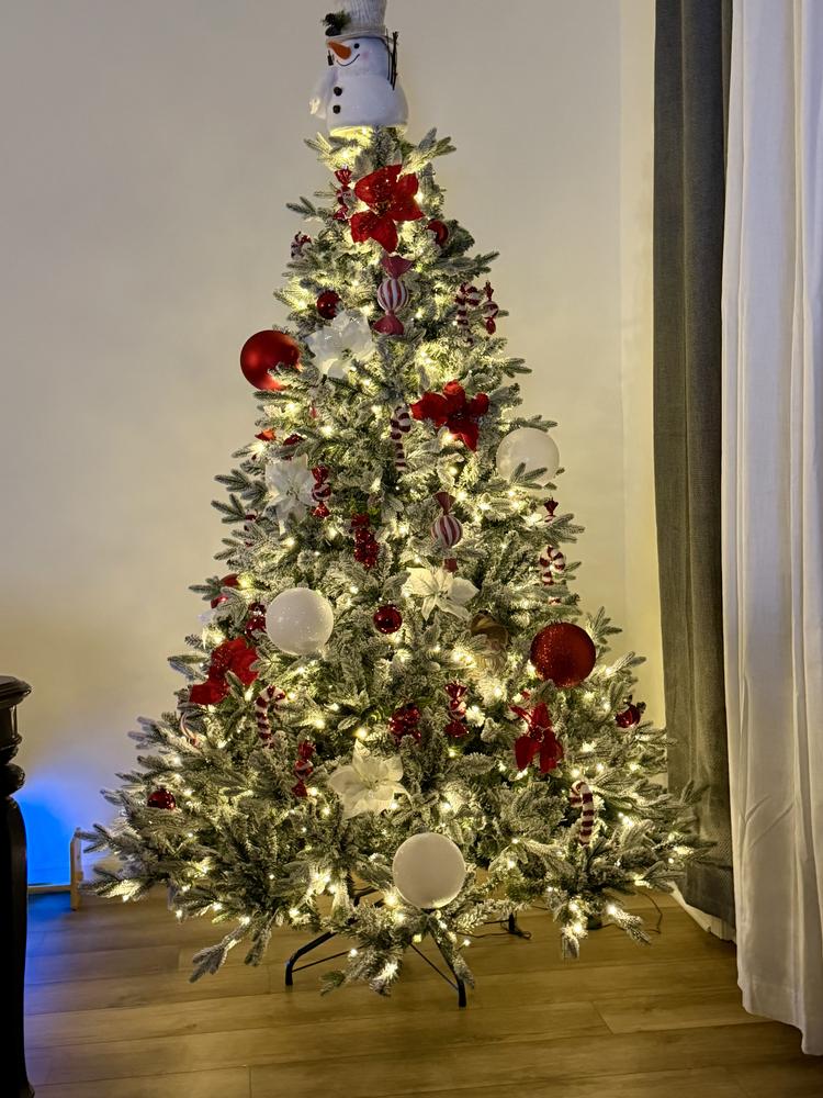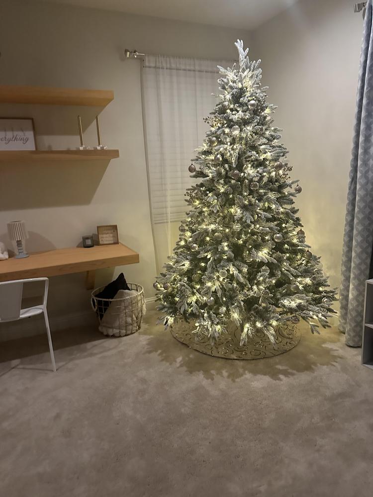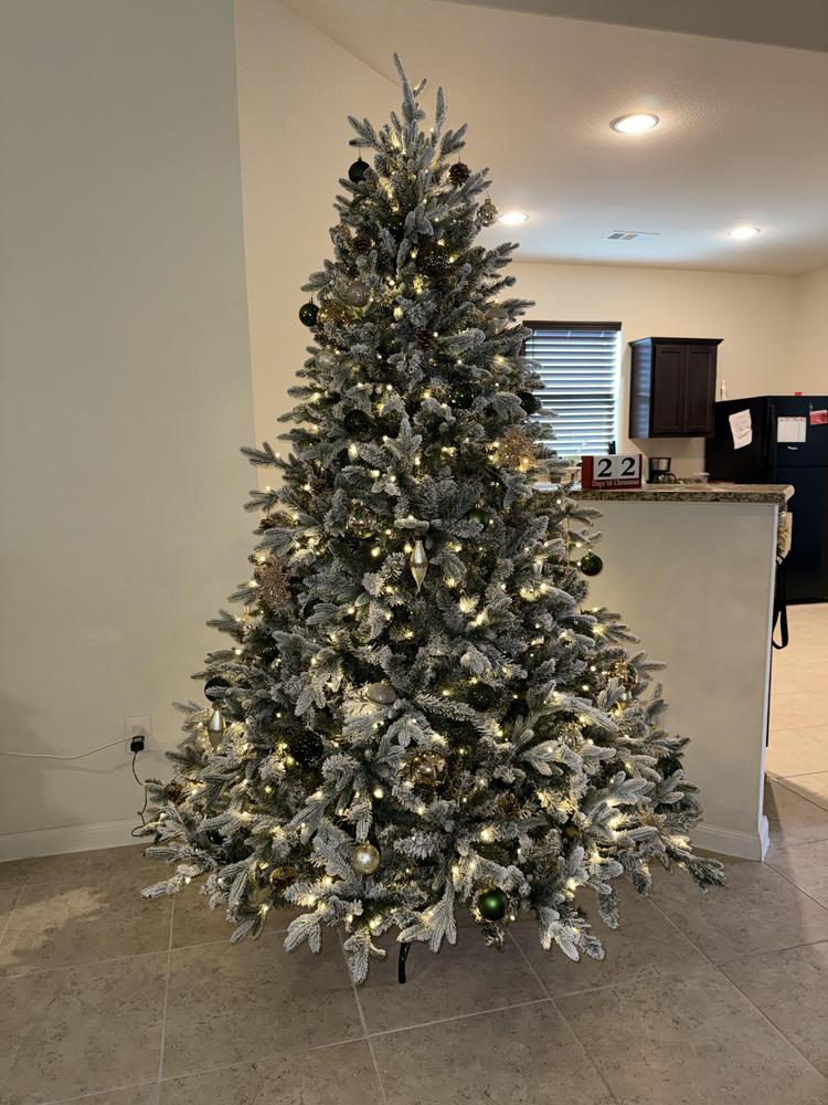 Skip the trip to a tree lot this year and anchor your holiday decorations with this 7.5ft. Pre-Lit Flocked Rockefeller Spruce Christmas Tree with 66in. diameter. Just as festive as a live tree, this artificial tree features 4042 tips to recreate the look of a natural tree-all without the upkeep. The Rockefeller tree is pre-lit with 700 warm white LED lights featuring 3 different functions. This Christmas tree features a full shape broken up into assembly sections to make connection and storage easy. It also arrives with a metal stand, so all you need to do is add a tree skirt, your favorite ornaments then sit back and enjoy the season.