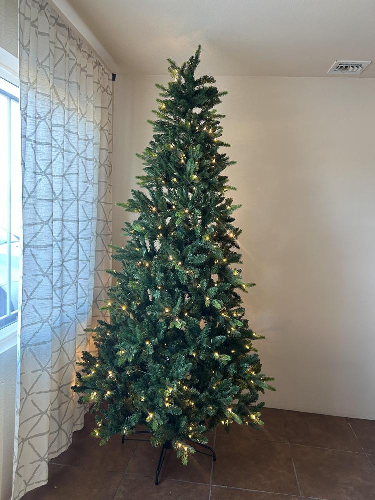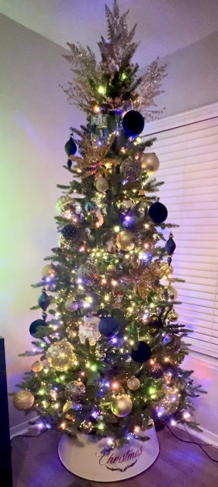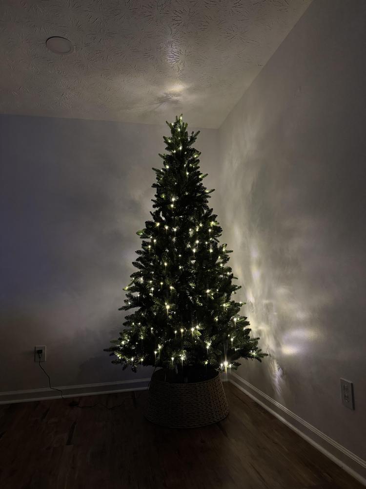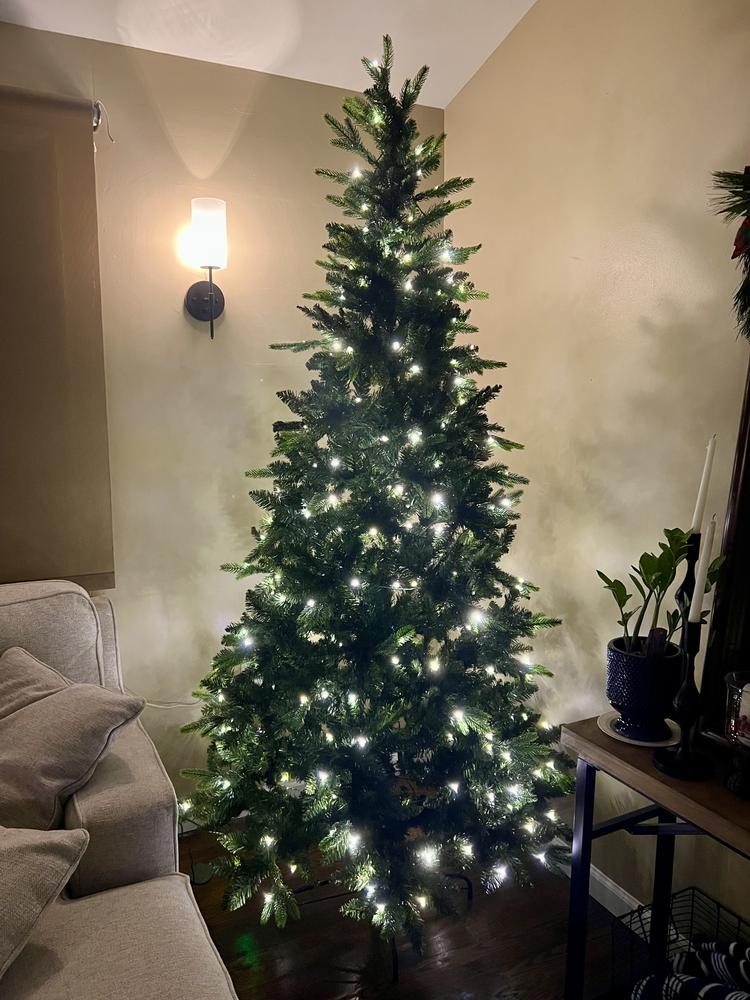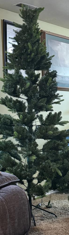 A classic spruce silhouette in rich green, our 7.5ft. Pre-Lit Hartford Spruce stands tall to anchor your holiday scene. 300 built-in color-changing LED lights are already woven through the branches for a clean, fuss-free glow. With a 1322 mixed PVC tip count, the plastic needles look realistic and are easy to shape for full, balanced coverage. This tree features a 48in. diameter, offering generous height with a space-smart footprint. Style it with your favorite ornaments and enjoy an effortless centerpiece from the first switch-on. Metal stand included.