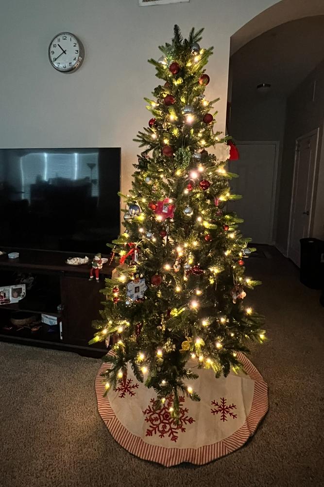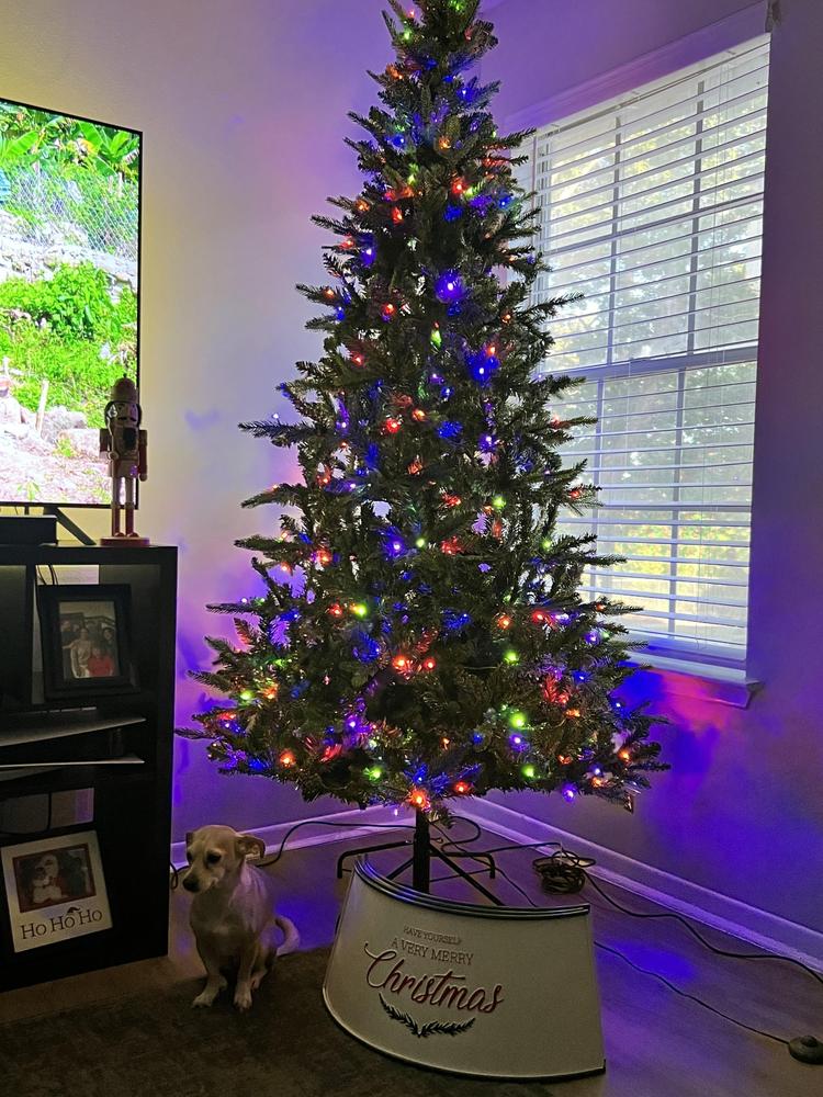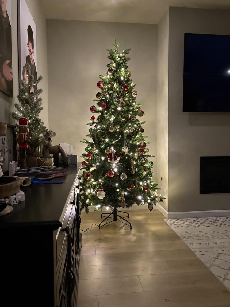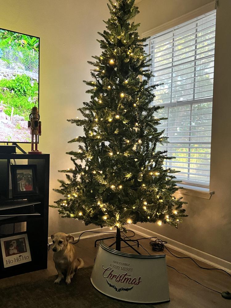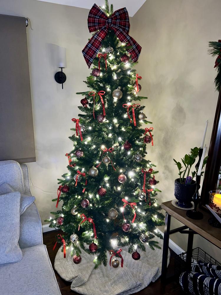 A classic spruce silhouette in rich green, our 7.5ft. Pre-Lit Hartford Spruce stands tall to anchor your holiday scene. 300 built-in color-changing LED lights are already woven through the branches for a clean, fuss-free glow. With a 1322 mixed PVC tip count, the plastic needles look realistic and are easy to shape for full, balanced coverage. This tree features a 48in. diameter, offering generous height with a space-smart footprint. Style it with your favorite ornaments and enjoy an effortless centerpiece from the first switch-on. Metal stand included.