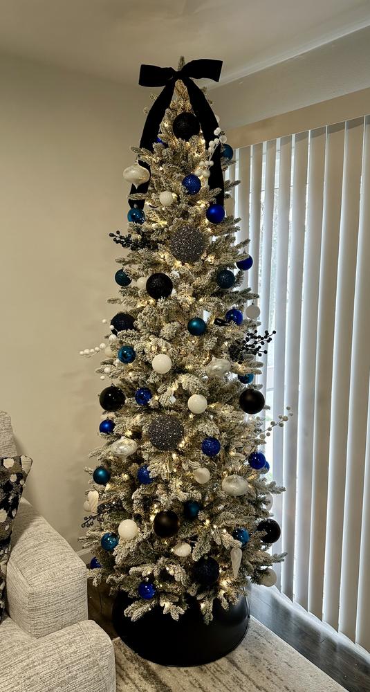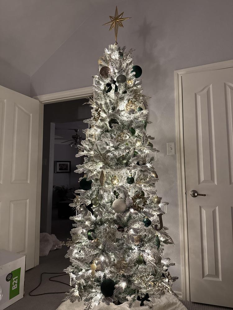 OH WOW, WOW!!! Those were the first words I said after laying eyes on this tree! It is stunningly beautiful. This was the first tree that caught the attention of my daughter and I. At Home was our first stop of many that day. After seeing hundreds of others, we both knew we had to back to the At Home store for the Pre-Lit Flocked Seattle Spruce Tree. The Winner!!!