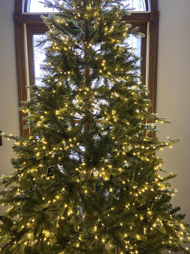 Capture Christmas magic with the lifelike spruce details in our premier Bradley Christmas Tree Collection. This 7.5ft. Pre-Lit Bradley Spruce Christmas Tree with 56in. diameter brings a full, natural silhouette with dense green branches and a soft, even glow. 3080 built-in warm white LED lights with 6 different functions are neatly spaced, so setup is simple, and the sparkle feels effortless. The dazzling array of twinkling lights are dimmable and transition from day to night. Featuring 3167 tip count and a classic green tone it makes a striking statement in any room the tree is placed. Remote control and metal stand included.