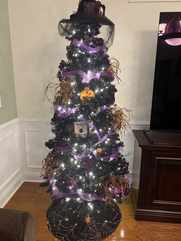 This tree is the perfect size to show off your Halloween decor. It’s full and well lit. Looks great in the corner of a room.
