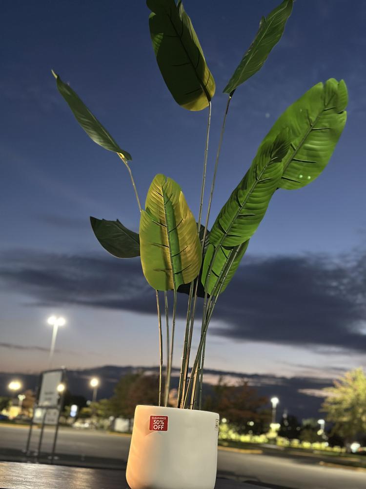 Add a touch of natural beauty to your home decor with our stunning Banana Leaf Tree with White Planter. Crafted with a white concrete planter, this 5-foot tall tree brings a refreshing burst of vibrant greenery to any room. Its lifelike banana leaf foliage lends a tropical and exotic vibe, creating a serene ambiance that instantly transports you to a lush paradise.