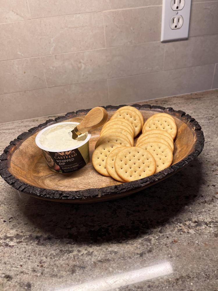 Perfect for serving appetizers or displaying decorative items, the Bark Edge Wooden Platter effortlessly combines functionality and style. Whether you're hosting a casual gathering or an elegant dinner party.