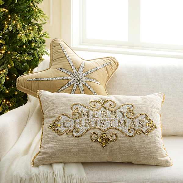 Beaded Merry Christmas Oblong Throw Pillow,14x22