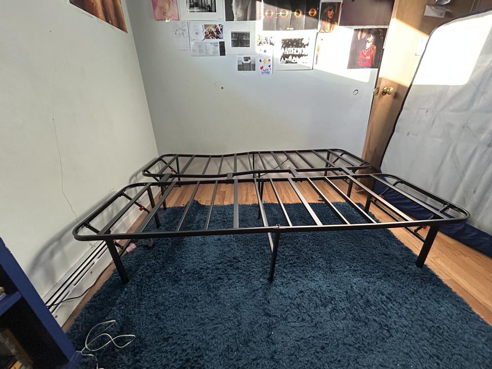 No box spring necessary! Take the work out of assembling a bed frame with a Bedder Base full mattress platform. You'll appreciate the strong metal construction and how it's easy to set up, easy to sleep on, and easy to dismantle and store away. Everything you need for assembling is included. Especially handy for guest rooms.