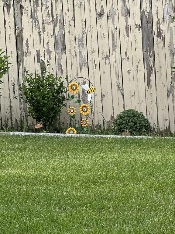 Whether you're a nature enthusiast or simply love a hint of visual delight, this Bee Flower Fence Yard Stake is sure to make a buzz. Its playful design and metal construction ensure that it will withstand the test of time, while effortlessly complementing your garden or flowerbed.