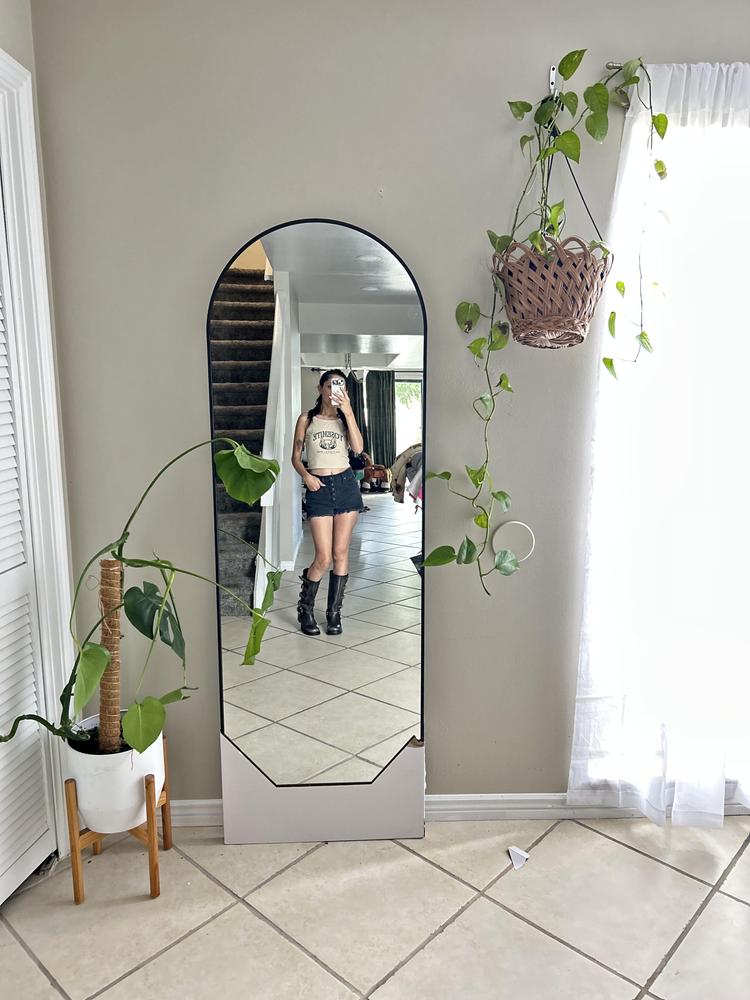 Elevate your room with the Black Arch Leaner Mirror's minimalist design. Its leaner style creates a visually appealing focal point that not only reflects light but also expands the visual space of any room. With its versatile functionality, this mirror is an ideal addition to any modern home.