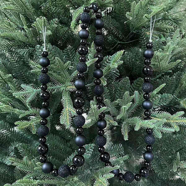Whether draped along your mantle, woven into your banister, or wrapped around your tree, this ornament garland becomes an instant highlight. Its simple black hue brings a cozy and welcoming touch to any space.