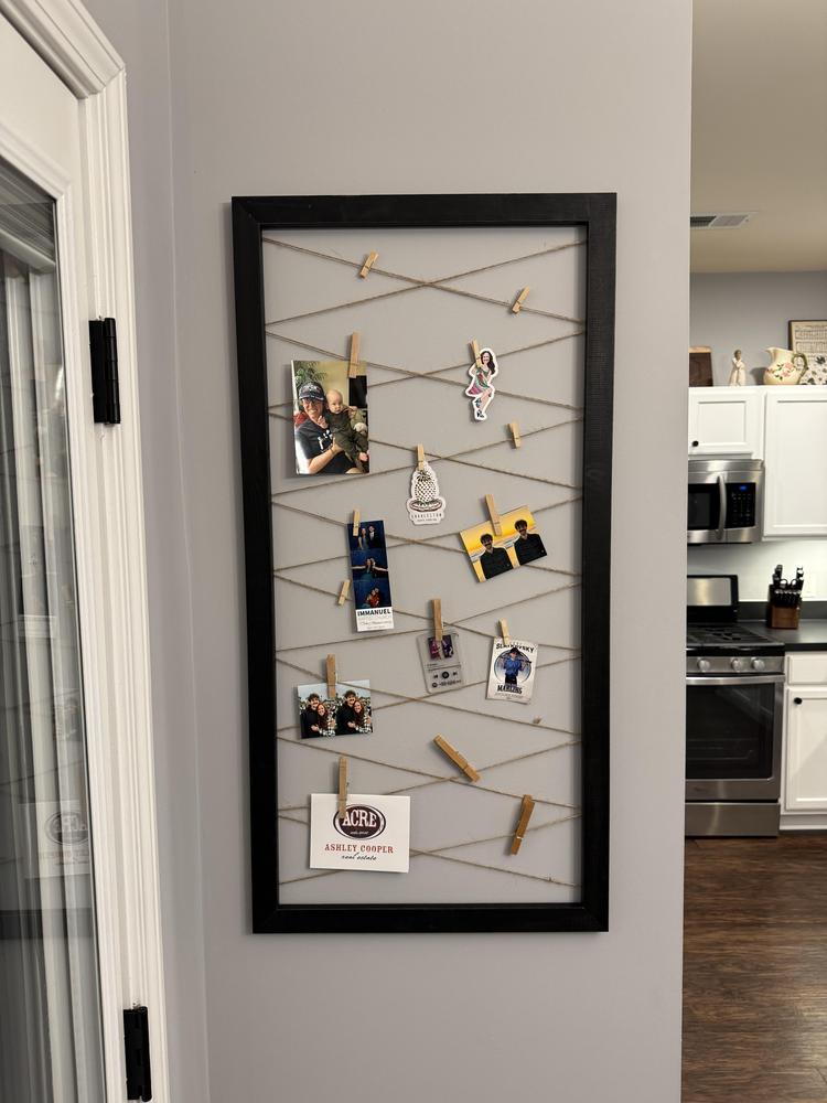 Black String Collage with Clothespin Photo Clips, 20X40