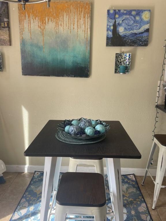 - Vibrant blue feathered design, creating a whimsical ambiance.