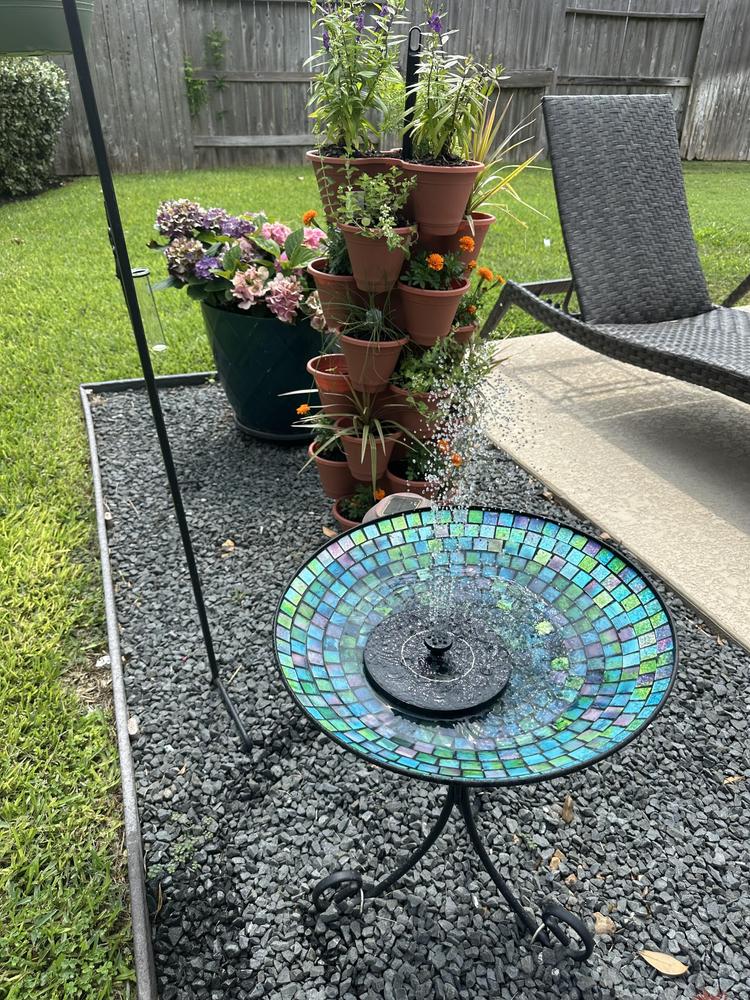 Blue & Green Mosaic Tile Glass Birdbath with Folding Metal S